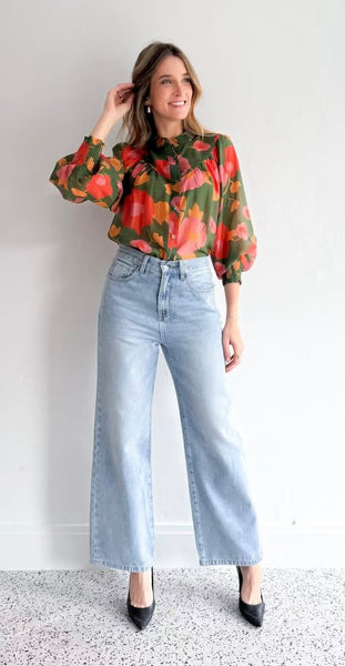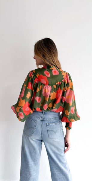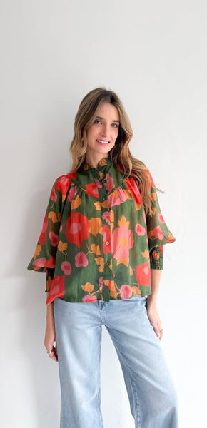 FLORAL ROUND YOKE DETAIL BOHO BLOUSE